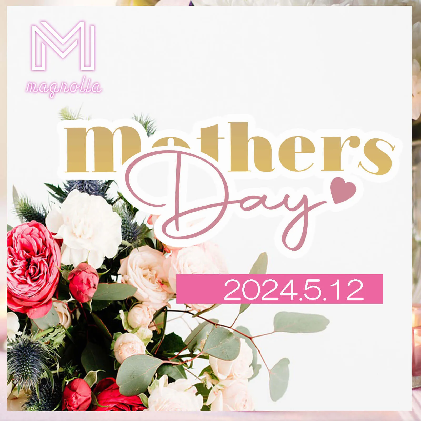 母の日のバナーでは、花束を丸くくり抜き、ぼかしを加えて柔らかな印象に。ロゴは丸みを持たせ、一部の文字が倒れることで遊び心とかわいらしさをプラス。ピンクの枠線と影が温かみと立体感を引き立てています。