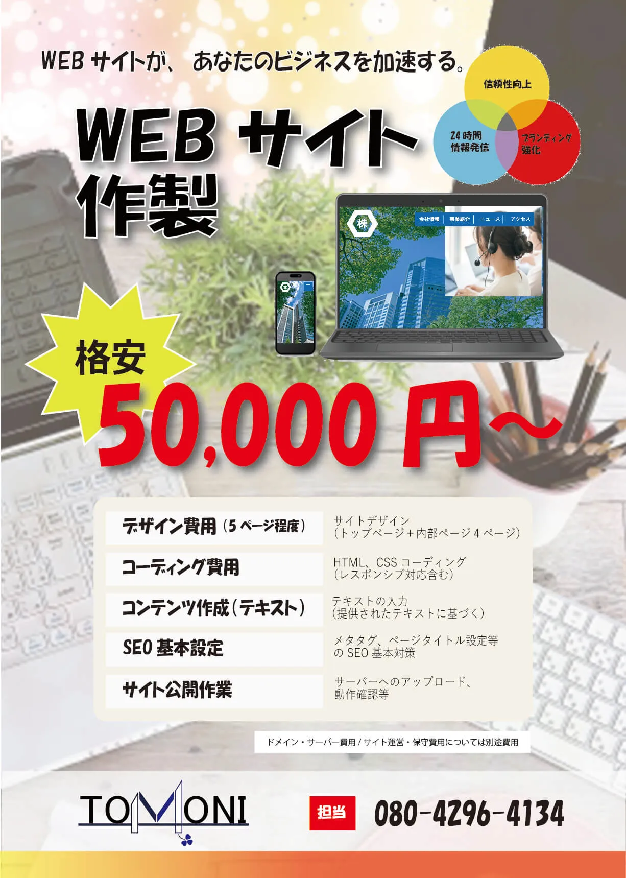 このWebサイト作成広告は、Webサイト制作事業の促進を目的に作成しました。幅広い世代をターゲットに、シンプルで分かりやすいデザインを重視しています。また、Webサイトの必要性や利便性をわかりやすく端的に伝える内容となっています。